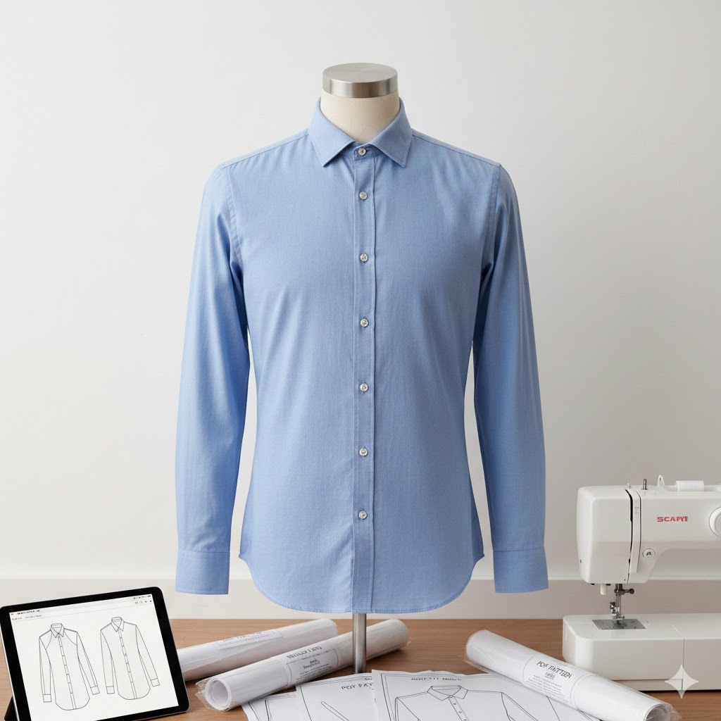 Mangas largas con puño y tapetilla, el cuello es camisero.