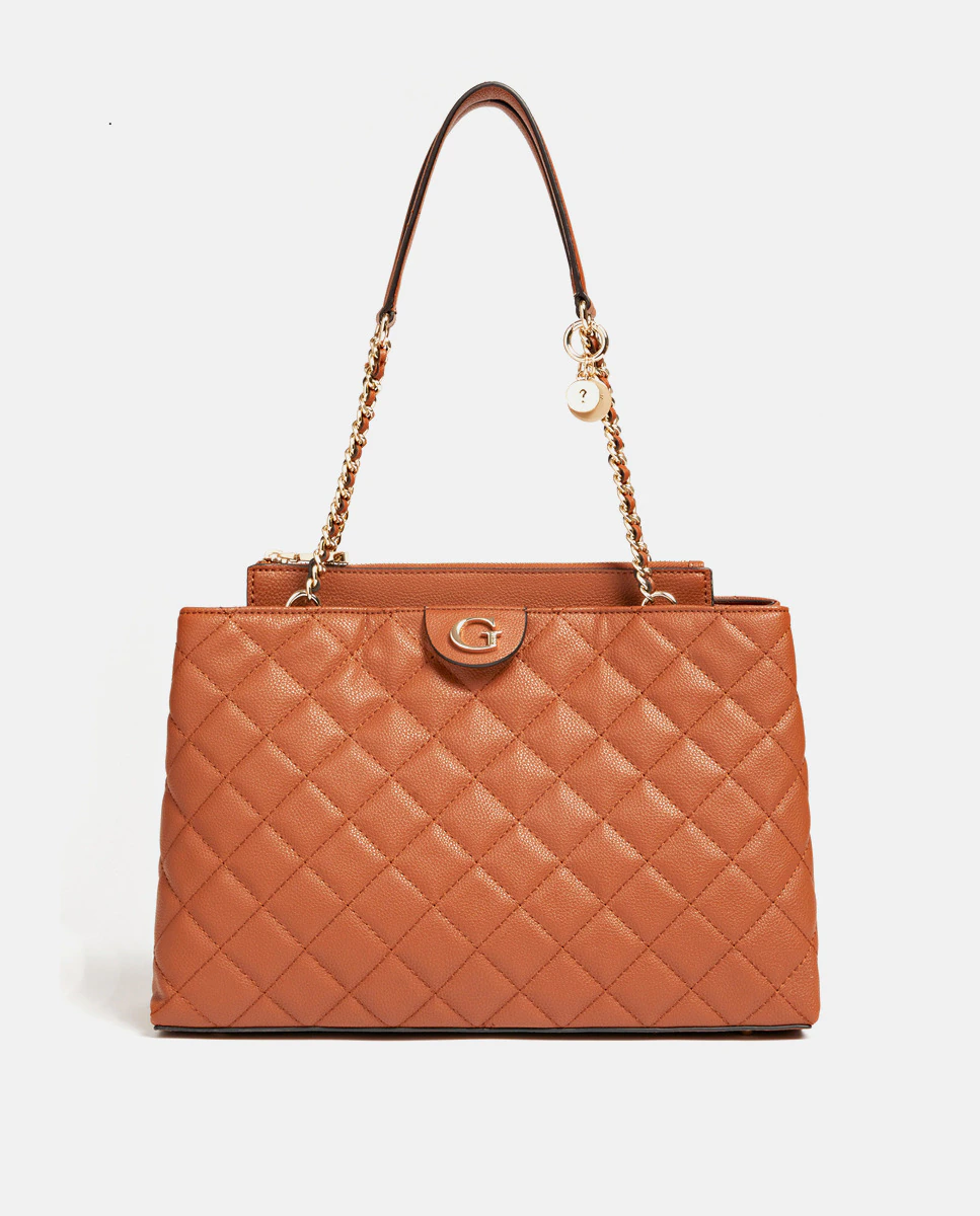 Guess Bolso de hombro acolchado en marrón con cremallera y asa media